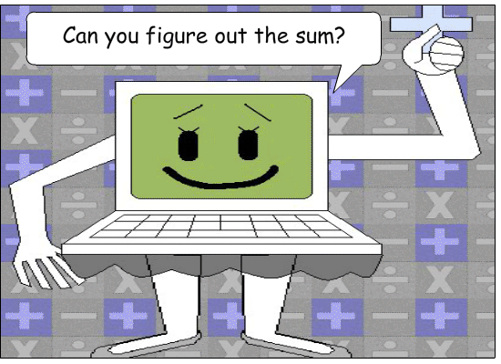This bonus animation is from the puzzle game entitled: "Miss IBM's Alternative Addition!" The math problem that appears on Miss IBM's screen is from the actual puzzle game. It's the 8th & last one used in the puzzle.