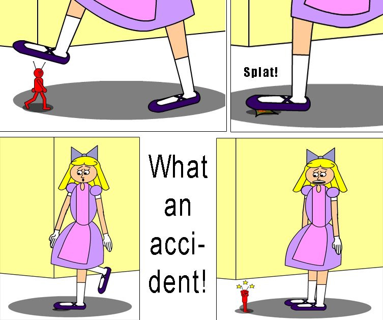 After accidentally stepping on Archy Ant at the beginning of this episode, Goldilocks apologizes to him; she even had her right foot apologize by foot-tapping "Sorry" in Morse code! (That's the one that squished him!) Then, Archy tells her that he has podophobia (fear of feet) because his tiny size makes him so vulnerable to stomping. That's a logical reason for his fear, although fear is often illogical!