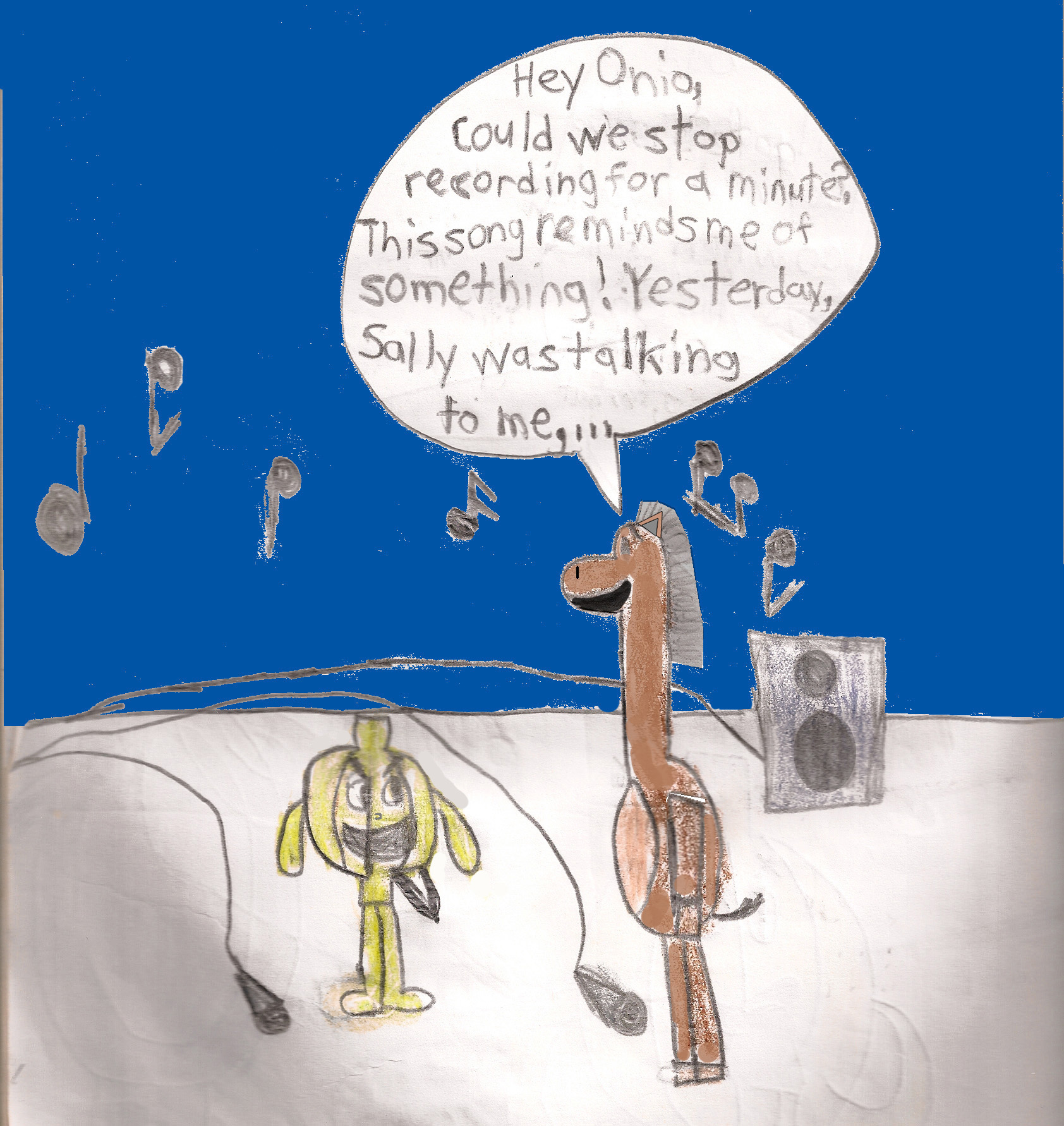 If you want to hear how the music in the comic strip sounds like, click on this sentence! Normally, you can't hear anything in a non-animated cartoon; however, that's where your imagination comes in! You need an imagination to enjoy art, dear viewers. Anyway, the comic strip begins just below: