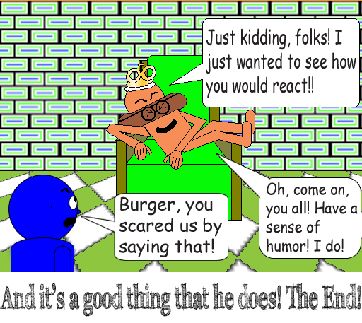 P.S.: Without a sense of humor, Burger might have had the Brass Ladies executed for real! Then he would neither receive redemption nor go to Heaven!