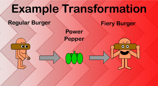 Sometimes, these transformations simply wear off after a while, or they last until the characters suffer an attack from an enemy. There are certain super items that are reserved for use by some characters, and then there are other super items that almost all the characters can use! The yellow diamonds, for example, only give Foodlandians the ability to fly for a while. (It has something to do with DNA...) Some characters can become more powerful without transforming! However most of the time, the super items make them transform to show how powerful they are. Some episodes thru out the series have more information about this; look out for it!