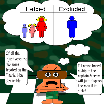 Women have other strengths to make up for that physical disadvantage in weightlifting. Perhaps men, on the average, are physically stronger, but quite often, women are socially stronger! There are times when men are treated like disposable people. When that famous ship the Titanic sank into the ocean, the captain & crew helped the women & children, but not the men; they expected the men to "be tough". Over a thousand men died in that tragedy; more men than women died when that ship sank. One man actually dressed up as a woman to survive that tragedy! However, he was called a coward for doing that. This is known as the Women & Children First Saying. Male children (boys) would be helped by the captain & crew; but when they grow up & become men, then they would be treated like disposables! No more help from the captain & crew! At least female children (girls) will never have to worry about that when they grow up! Then again, women mourn the dead men they loved, so it's kind of bad for the ladies, too.